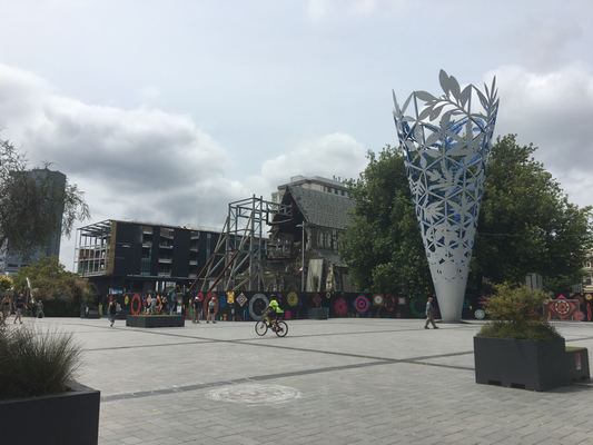Nach der ersten Nacht also fuhren wir mit dem Bus ins Stadtzentrum. Das trotz der verheerenden Erdbeben von 2010 und 2011 sehr sympathische und quirlige Städtchen, ist von Baustellen durchlöchert und allerorts von Übergangslösungen geprägt, die aber durchaus ihren Charme haben. So zum Beispiel die Container-Mall, wo wir einen großartigen „Bing“-mittagssnack (chinesischer Bruder des Burrito) in der Sonne aßen. Nach guten 3 Stunden hatten wir den Stadtrundgang beendet und nutzten den Nachmittag zum „Aufmöbeln“ unseres Vans.