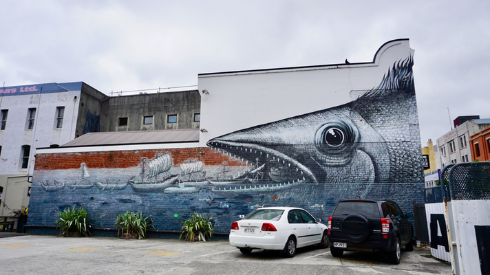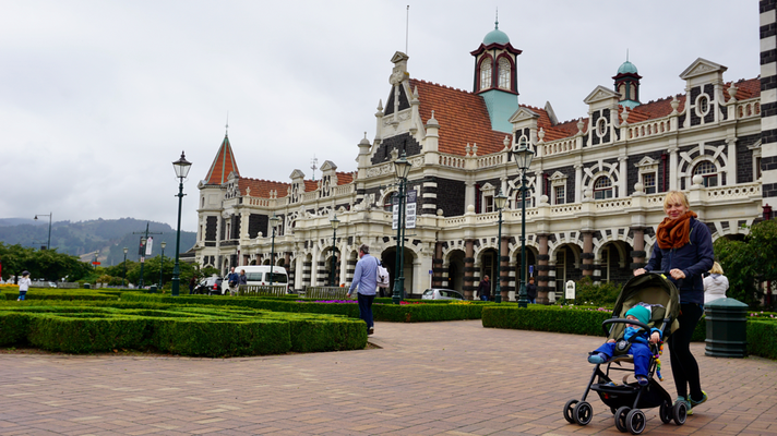 In Dunedin angekommen, schlenderten wir durch die mit Craft-Beer-Bars und Espresso-Cafés gesäumten Straßen und genossen es, uns wie Studenten (mit Kind) zu fühlen. Die Stadt wird wegen seines schottischen Ursprungs auch oft als „Edinburgh“ Neuseelands bezeichnet. Nicht nur die bestens erhaltene viktorianische und Edwardian Architektur macht die Stadt anziehend, sondern auch die zahlreichen Pubs und Bars. Zur Stärkung gab es deswegen stilecht Fish & Chips mit Bier, bevor wir zu Fuß eine kleine Street-Art Tour durch den alten Industriebezirk machten.