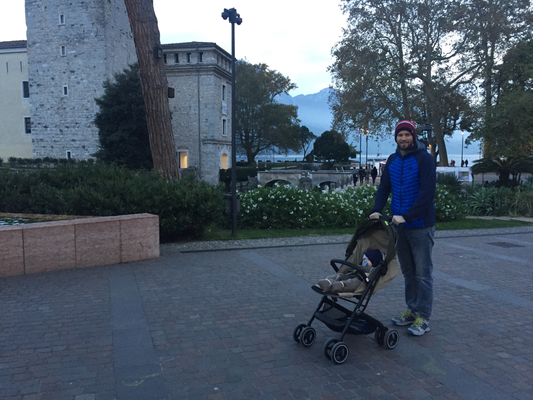 Ausgeschlafen machten wir uns auf den Weg nach Bella Italia. Als perfekten Zeitrahmen für unsere Fahrt stellte sich die Marke von ca. 3 Stunden heraus - die konnte Jonas gut verkraften und die meiste Zeit mit schlafen verbringen, oder sich am ständig verändernden Anblick durchs Fenster erfreuen.